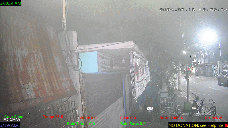 1 Rain season in the Philippines: June 1st to Oct 31st.   5 Estimated amount of water needed to replace the water used by plants and evaporation from the past week. (Negative numbers mean amount of water needed, positive numbers mean excess water is present).   6 Air Quality Index is provided by Luftdaten System esp8266 and is updated every 5 mins..   10 Historical average only to day 19 of just the month of March for this station since 2016.   11 Historical average rain this season to day 19 of March for this station since 2016.