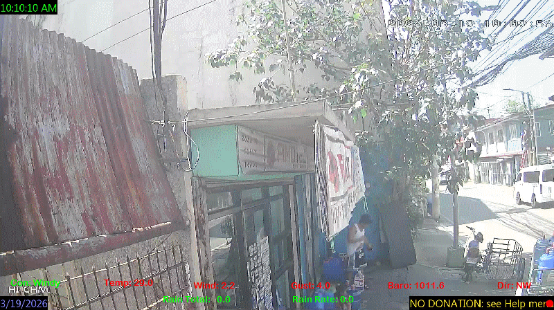 1 Rain season in the Philippines: June 1st to Oct 31st.   5 Estimated amount of water needed to replace the water used by plants and evaporation from the past week. (Negative numbers mean amount of water needed, positive numbers mean excess water is present).   6 Air Quality Index is provided by Luftdaten System esp8266 and is updated every 5 mins..   10 Historical average only to day 19 of just the month of March for this station since 2016.   11 Historical average rain this season to day 19 of March for this station since 2016.