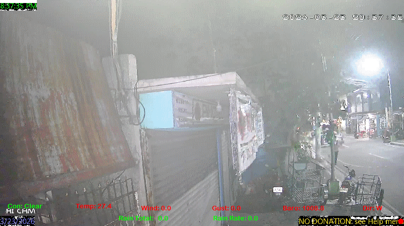 1 Rain season in the Philippines: June 1st to Oct 31st.   5 Estimated amount of water needed to replace the water used by plants and evaporation from the past week. (Negative numbers mean amount of water needed, positive numbers mean excess water is present).   6 Air Quality Index is provided by Luftdaten System esp8266 and is updated every 5 mins..   10 Historical average only to day 23 of just the month of March for this station since 2016.   11 Historical average rain this season to day 23 of March for this station since 2016.