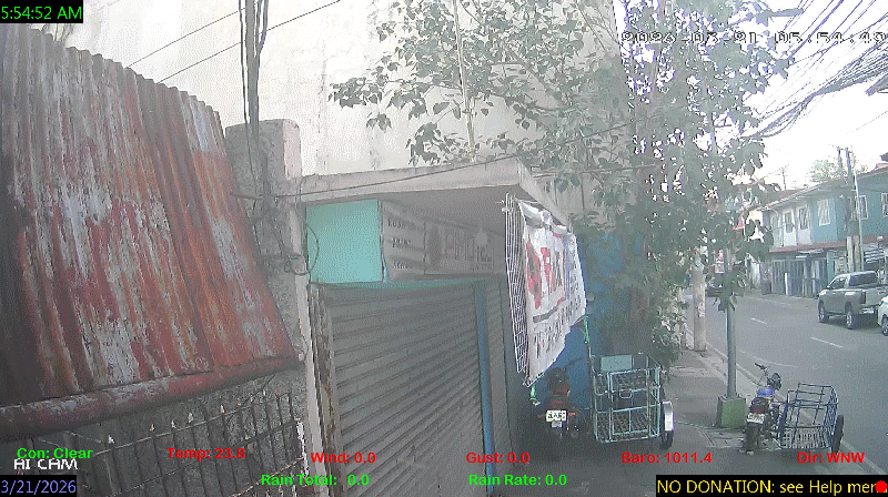 1 Rain season in the Philippines: June 1st to Oct 31st.   5 Estimated amount of water needed to replace the water used by plants and evaporation from the past week. (Negative numbers mean amount of water needed, positive numbers mean excess water is present).   6 Air Quality Index is provided by Luftdaten System esp8266 and is updated every 5 mins..   10 Historical average only to day 21 of just the month of March for this station since 2016.   11 Historical average rain this season to day 21 of March for this station since 2016.