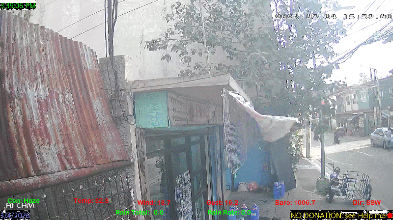 1 Rain season in the Philippines: June 1st to Oct 31st.   5 Estimated amount of water needed to replace the water used by plants and evaporation from the past week. (Negative numbers mean amount of water needed, positive numbers mean excess water is present).   6 Air Quality Index is provided by Luftdaten System esp8266 and is updated every 5 mins..   9 Solar Index represents either an absolute scale of solar energy (W/m²) using the station’s recorded maximum or a percentage of computed theoretical solar maximum using the station’s location and time of day. These indices differ most when the sun is low on the horizon. The current scale is shown, and will toggle if it or the icon is clicked.   10 Historical average only to day 4 of just the month of March for this station since 2016.   11 Historical average rain this season to day 4 of March for this station since 2016.