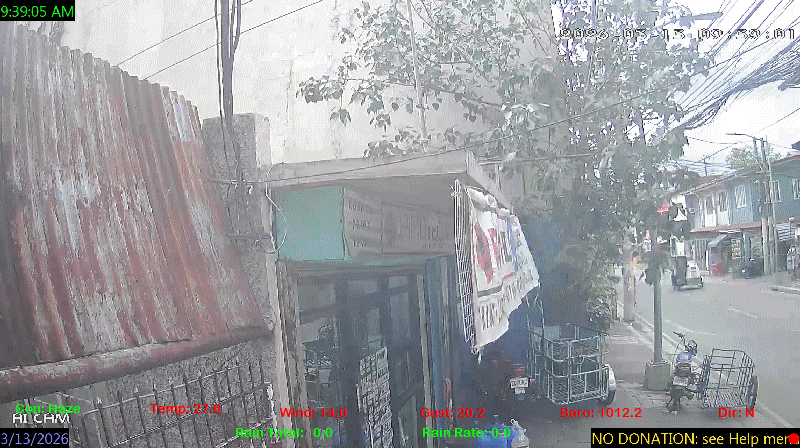 1 Rain season in the Philippines: June 1st to Oct 31st.   5 Estimated amount of water needed to replace the water used by plants and evaporation from the past week. (Negative numbers mean amount of water needed, positive numbers mean excess water is present).   6 Air Quality Index is provided by Luftdaten System esp8266 and is updated every 5 mins..   10 Historical average only to day 13 of just the month of March for this station since 2016.   11 Historical average rain this season to day 13 of March for this station since 2016.