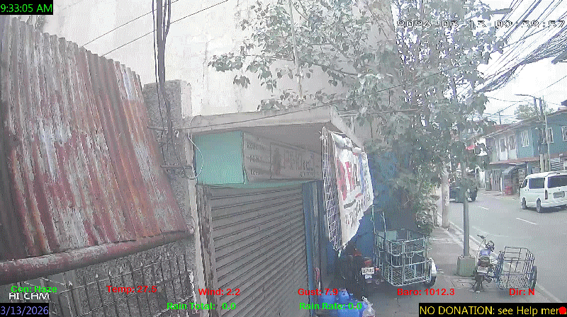 1 Rain season in the Philippines: June 1st to Oct 31st.   5 Estimated amount of water needed to replace the water used by plants and evaporation from the past week. (Negative numbers mean amount of water needed, positive numbers mean excess water is present).   6 Air Quality Index is provided by Luftdaten System esp8266 and is updated every 5 mins..   10 Historical average only to day 13 of just the month of March for this station since 2016.   11 Historical average rain this season to day 13 of March for this station since 2016.