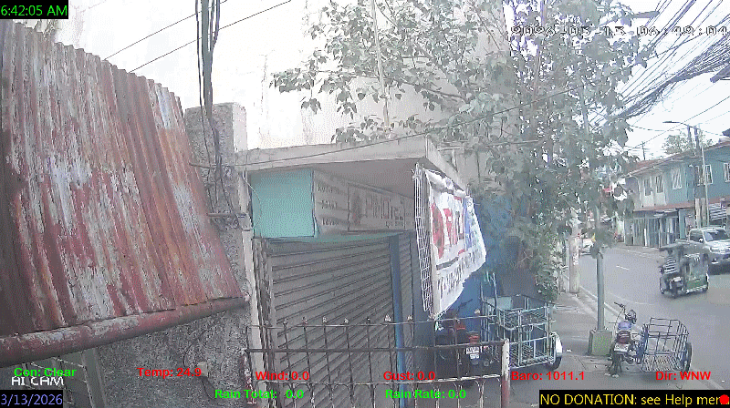 1 Rain season in the Philippines: June 1st to Oct 31st.   5 Estimated amount of water needed to replace the water used by plants and evaporation from the past week. (Negative numbers mean amount of water needed, positive numbers mean excess water is present).   6 Air Quality Index is provided by Luftdaten System esp8266 and is updated every 5 mins..   10 Historical average only to day 13 of just the month of March for this station since 2016.   11 Historical average rain this season to day 13 of March for this station since 2016.