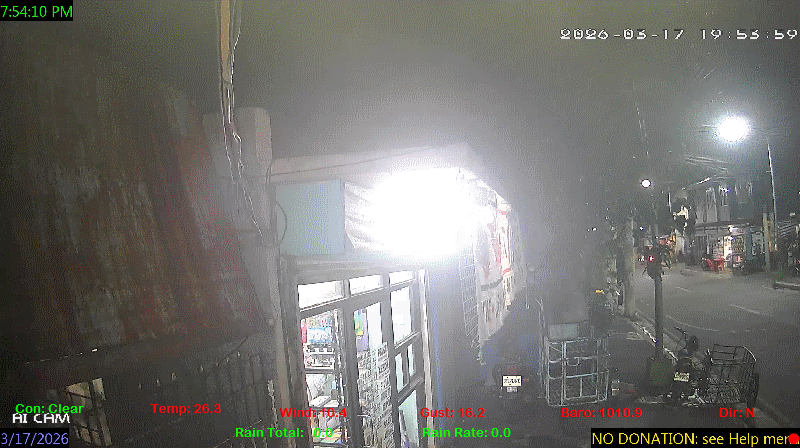 1 Rain season in the Philippines: June 1st to Oct 31st.   5 Estimated amount of water needed to replace the water used by plants and evaporation from the past week. (Negative numbers mean amount of water needed, positive numbers mean excess water is present).   6 Air Quality Index is provided by Luftdaten System esp8266 and is updated every 5 mins..   9 Solar Index represents either an absolute scale of solar energy (W/m²) using the station’s recorded maximum or a percentage of computed theoretical solar maximum using the station’s location and time of day. These indices differ most when the sun is low on the horizon. The current scale is shown, and will toggle if it or the icon is clicked.   10 Historical average only to day 17 of just the month of March for this station since 2016.   11 Historical average rain this season to day 17 of March for this station since 2016.