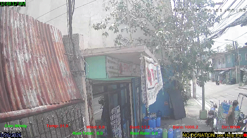 1 Rain season in the Philippines: June 1st to Oct 31st.   5 Estimated amount of water needed to replace the water used by plants and evaporation from the past week. (Negative numbers mean amount of water needed, positive numbers mean excess water is present).   6 Air Quality Index is provided by Luftdaten System esp8266 and is updated every 5 mins..   9 Solar Index represents either an absolute scale of solar energy (W/m²) using the station’s recorded maximum or a percentage of computed theoretical solar maximum using the station’s location and time of day. These indices differ most when the sun is low on the horizon. The current scale is shown, and will toggle if it or the icon is clicked.   10 Historical average only to day 26 of just the month of March for this station since 2016.   11 Historical average rain this season to day 26 of March for this station since 2016.