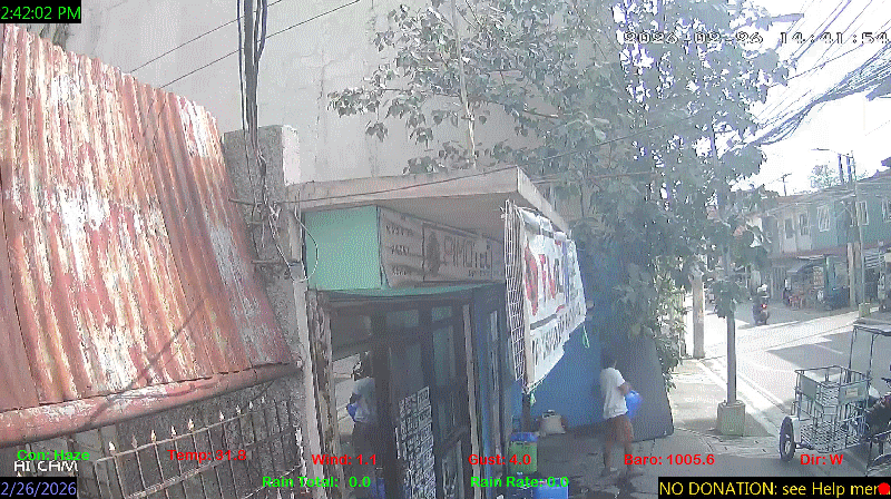 1 Rain season in the Philippines: June 1st to Oct 31st.   5 Estimated amount of water needed to replace the water used by plants and evaporation from the past week. (Negative numbers mean amount of water needed, positive numbers mean excess water is present).   6 Air Quality Index is provided by Luftdaten System esp8266 and is updated every 5 mins..   9 Solar Index represents either an absolute scale of solar energy (W/m²) using the station’s recorded maximum or a percentage of computed theoretical solar maximum using the station’s location and time of day. These indices differ most when the sun is low on the horizon. The current scale is shown, and will toggle if it or the icon is clicked.   10 Historical average only to day 26 of just the month of February for this station since 2016.   11 Historical average rain this season to day 26 of February for this station since 2016.
