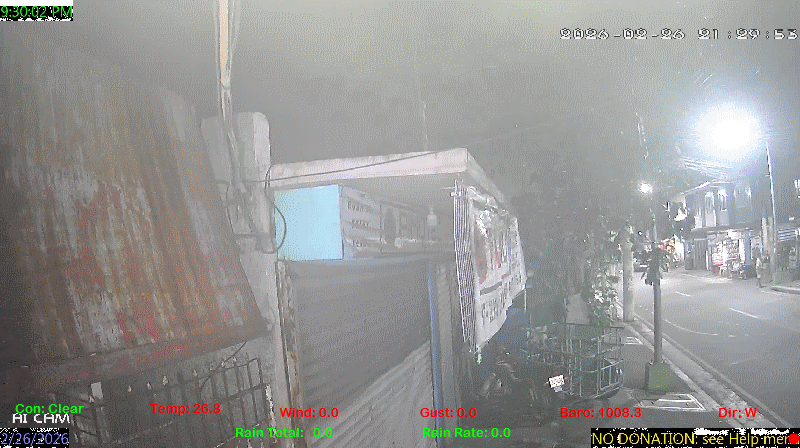 1 Rain season in the Philippines: June 1st to Oct 31st.   5 Estimated amount of water needed to replace the water used by plants and evaporation from the past week. (Negative numbers mean amount of water needed, positive numbers mean excess water is present).   6 Air Quality Index is provided by Luftdaten System esp8266 and is updated every 5 mins..   9 Solar Index represents either an absolute scale of solar energy (W/m²) using the station’s recorded maximum or a percentage of computed theoretical solar maximum using the station’s location and time of day. These indices differ most when the sun is low on the horizon. The current scale is shown, and will toggle if it or the icon is clicked.   10 Historical average only to day 26 of just the month of February for this station since 2016.   11 Historical average rain this season to day 26 of February for this station since 2016.