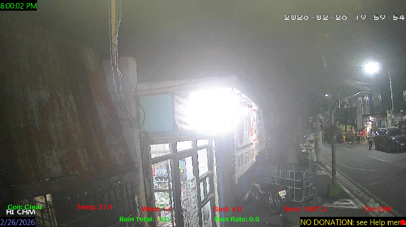 1 Rain season in the Philippines: June 1st to Oct 31st.   5 Estimated amount of water needed to replace the water used by plants and evaporation from the past week. (Negative numbers mean amount of water needed, positive numbers mean excess water is present).   6 Air Quality Index is provided by Luftdaten System esp8266 and is updated every 5 mins..   9 Solar Index represents either an absolute scale of solar energy (W/m²) using the station’s recorded maximum or a percentage of computed theoretical solar maximum using the station’s location and time of day. These indices differ most when the sun is low on the horizon. The current scale is shown, and will toggle if it or the icon is clicked.   10 Historical average only to day 26 of just the month of February for this station since 2016.   11 Historical average rain this season to day 26 of February for this station since 2016.