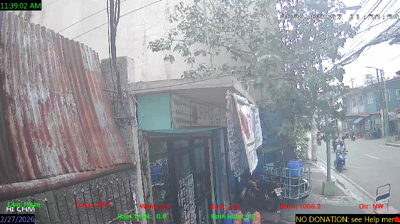 1 Rain season in the Philippines: June 1st to Oct 31st.   5 Estimated amount of water needed to replace the water used by plants and evaporation from the past week. (Negative numbers mean amount of water needed, positive numbers mean excess water is present).   6 Air Quality Index is provided by Luftdaten System esp8266 and is updated every 5 mins..   10 Historical average only to day 27 of just the month of February for this station since 2016.   11 Historical average rain this season to day 27 of February for this station since 2016.