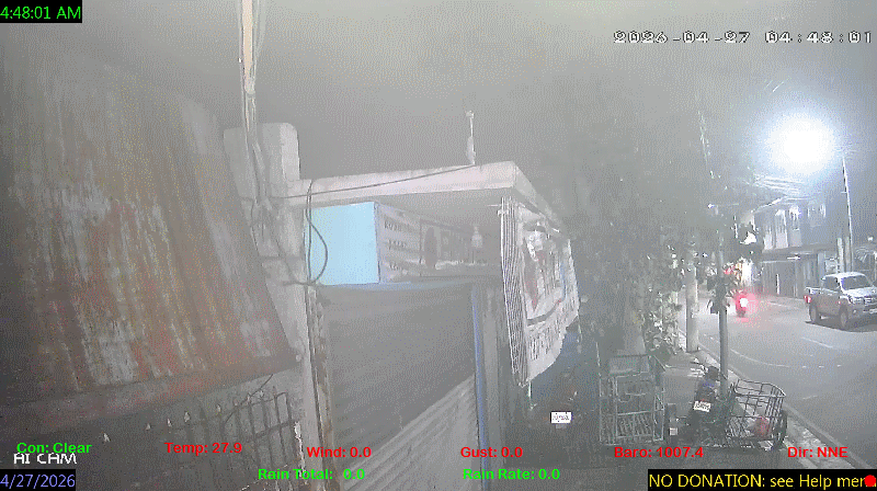 1 Rain season in the Philippines: June 1st to Oct 31st.   5 Estimated amount of water needed to replace the water used by plants and evaporation from the past week. (Negative numbers mean amount of water needed, positive numbers mean excess water is present).   6 Air Quality Index is provided by Luftdaten System esp8266 and is updated every 5 mins..   10 Historical average only to day 27 of just the month of April for this station since 2017.   11 Historical average rain this season to day 27 of April for this station since 2017.