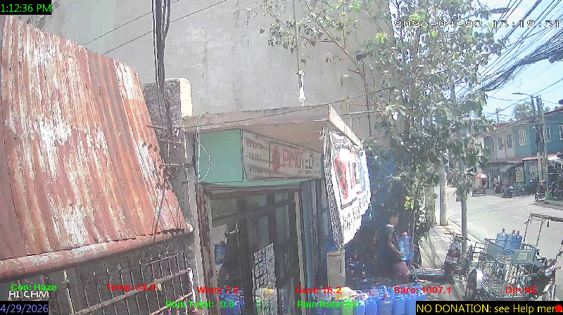1 Rain season in the Philippines: June 1st to Oct 31st.   5 Estimated amount of water needed to replace the water used by plants and evaporation from the past week. (Negative numbers mean amount of water needed, positive numbers mean excess water is present).   6 Air Quality Index is provided by Luftdaten System esp8266 and is updated every 5 mins..   9 Solar Index represents either an absolute scale of solar energy (W/m²) using the station’s recorded maximum or a percentage of computed theoretical solar maximum using the station’s location and time of day. These indices differ most when the sun is low on the horizon. The current scale is shown, and will toggle if it or the icon is clicked.   10 Historical average only to day 29 of just the month of April for this station since 2017.   11 Historical average rain this season to day 29 of April for this station since 2017.