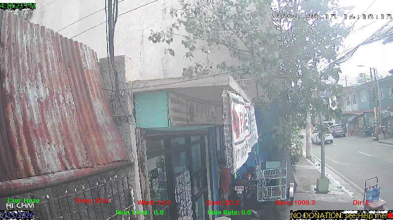 1 Rain season in the Philippines: June 1st to Oct 31st.   5 Estimated amount of water needed to replace the water used by plants and evaporation from the past week. (Negative numbers mean amount of water needed, positive numbers mean excess water is present).   6 Air Quality Index is provided by Luftdaten System esp8266 and is updated every 5 mins..   9 Solar Index represents either an absolute scale of solar energy (W/m²) using the station’s recorded maximum or a percentage of computed theoretical solar maximum using the station’s location and time of day. These indices differ most when the sun is low on the horizon. The current scale is shown, and will toggle if it or the icon is clicked.   10 Historical average only to day 13 of just the month of February for this station since 2016.   11 Historical average rain this season to day 13 of February for this station since 2016.
