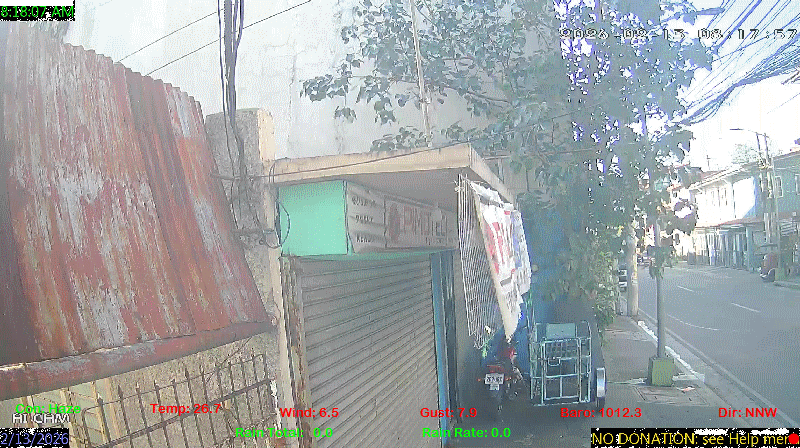 1 Rain season in the Philippines: June 1st to Oct 31st.   5 Estimated amount of water needed to replace the water used by plants and evaporation from the past week. (Negative numbers mean amount of water needed, positive numbers mean excess water is present).   6 Air Quality Index is provided by Luftdaten System esp8266 and is updated every 5 mins..   9 Solar Index represents either an absolute scale of solar energy (W/m²) using the station’s recorded maximum or a percentage of computed theoretical solar maximum using the station’s location and time of day. These indices differ most when the sun is low on the horizon. The current scale is shown, and will toggle if it or the icon is clicked.   10 Historical average only to day 13 of just the month of February for this station since 2016.   11 Historical average rain this season to day 13 of February for this station since 2016.