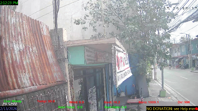 1 Rain season in the Philippines: June 1st to Oct 31st.   5 Estimated amount of water needed to replace the water used by plants and evaporation from the past week. (Negative numbers mean amount of water needed, positive numbers mean excess water is present).   6 Air Quality Index is provided by Luftdaten System esp8266 and is updated every 5 mins..   9 Solar Index represents either an absolute scale of solar energy (W/m²) using the station’s recorded maximum or a percentage of computed theoretical solar maximum using the station’s location and time of day. These indices differ most when the sun is low on the horizon. The current scale is shown, and will toggle if it or the icon is clicked.   10 Historical average only to day 13 of just the month of February for this station since 2016.   11 Historical average rain this season to day 13 of February for this station since 2016.
