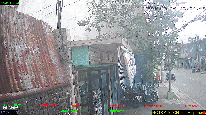 1 Rain season in the Philippines: June 1st to Oct 31st.   5 Estimated amount of water needed to replace the water used by plants and evaporation from the past week. (Negative numbers mean amount of water needed, positive numbers mean excess water is present).   6 Air Quality Index is provided by Luftdaten System esp8266 and is updated every 5 mins..   9 Solar Index represents either an absolute scale of solar energy (W/m²) using the station’s recorded maximum or a percentage of computed theoretical solar maximum using the station’s location and time of day. These indices differ most when the sun is low on the horizon. The current scale is shown, and will toggle if it or the icon is clicked.   10 Historical average only to day 12 of just the month of February for this station since 2016.   11 Historical average rain this season to day 12 of February for this station since 2016.