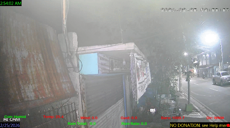 1 Rain season in the Philippines: June 1st to Oct 31st.   5 Estimated amount of water needed to replace the water used by plants and evaporation from the past week. (Negative numbers mean amount of water needed, positive numbers mean excess water is present).   6 Air Quality Index is provided by Luftdaten System esp8266 and is updated every 5 mins..   9 Solar Index represents either an absolute scale of solar energy (W/m²) using the station’s recorded maximum or a percentage of computed theoretical solar maximum using the station’s location and time of day. These indices differ most when the sun is low on the horizon. The current scale is shown, and will toggle if it or the icon is clicked.   10 Historical average only to day 24 of just the month of February for this station since 2016.   11 Historical average rain this season to day 24 of February for this station since 2016.
