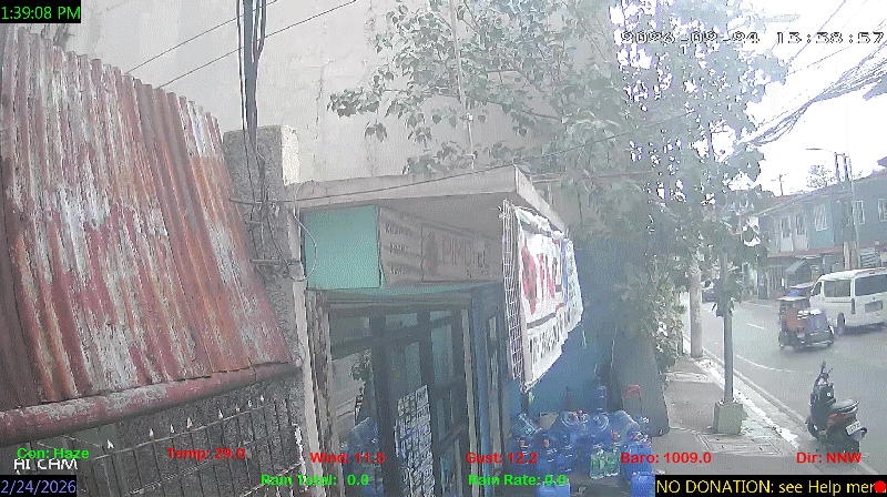 1 Rain season in the Philippines: June 1st to Oct 31st.   5 Estimated amount of water needed to replace the water used by plants and evaporation from the past week. (Negative numbers mean amount of water needed, positive numbers mean excess water is present).   6 Air Quality Index is provided by Luftdaten System esp8266 and is updated every 5 mins..   10 Historical average only to day 24 of just the month of February for this station since 2016.   11 Historical average rain this season to day 24 of February for this station since 2016.