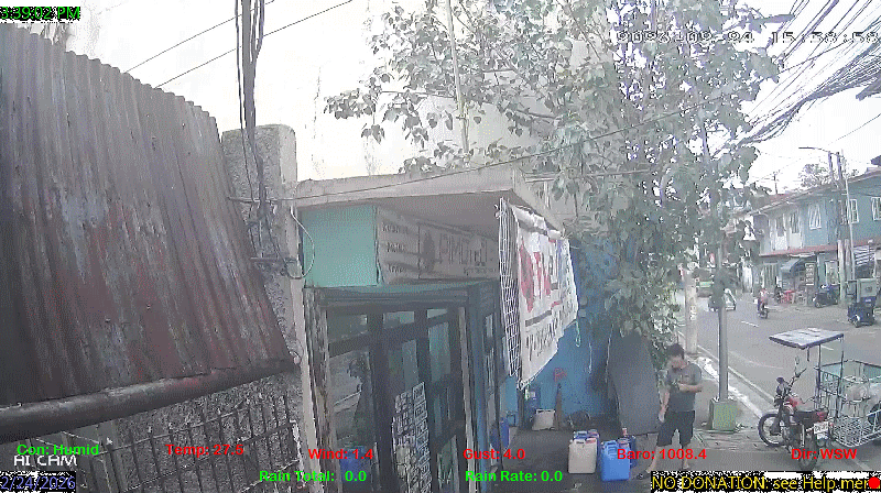 1 Rain season in the Philippines: June 1st to Oct 31st.   5 Estimated amount of water needed to replace the water used by plants and evaporation from the past week. (Negative numbers mean amount of water needed, positive numbers mean excess water is present).   6 Air Quality Index is provided by Luftdaten System esp8266 and is updated every 5 mins..   9 Solar Index represents either an absolute scale of solar energy (W/m²) using the station’s recorded maximum or a percentage of computed theoretical solar maximum using the station’s location and time of day. These indices differ most when the sun is low on the horizon. The current scale is shown, and will toggle if it or the icon is clicked.   10 Historical average only to day 24 of just the month of February for this station since 2016.   11 Historical average rain this season to day 24 of February for this station since 2016.