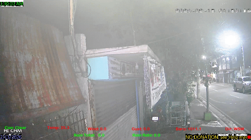 1 Rain season in the Philippines: June 1st to Oct 31st.   5 Estimated amount of water needed to replace the water used by plants and evaporation from the past week. (Negative numbers mean amount of water needed, positive numbers mean excess water is present).   6 Air Quality Index is provided by Luftdaten System esp8266 and is updated every 5 mins..   9 Solar Index represents either an absolute scale of solar energy (W/m²) using the station’s recorded maximum or a percentage of computed theoretical solar maximum using the station’s location and time of day. These indices differ most when the sun is low on the horizon. The current scale is shown, and will toggle if it or the icon is clicked.   10 Historical average only to day 12 of just the month of February for this station since 2016.   11 Historical average rain this season to day 12 of February for this station since 2016.
