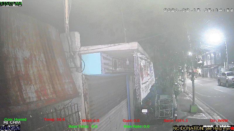 1 Rain season in the Philippines: June 1st to Oct 31st.   5 Estimated amount of water needed to replace the water used by plants and evaporation from the past week. (Negative numbers mean amount of water needed, positive numbers mean excess water is present).   6 Air Quality Index is provided by Luftdaten System esp8266 and is updated every 5 mins..   9 Solar Index represents either an absolute scale of solar energy (W/m²) using the station’s recorded maximum or a percentage of computed theoretical solar maximum using the station’s location and time of day. These indices differ most when the sun is low on the horizon. The current scale is shown, and will toggle if it or the icon is clicked.   10 Historical average only to day 13 of just the month of February for this station since 2016.   11 Historical average rain this season to day 13 of February for this station since 2016.