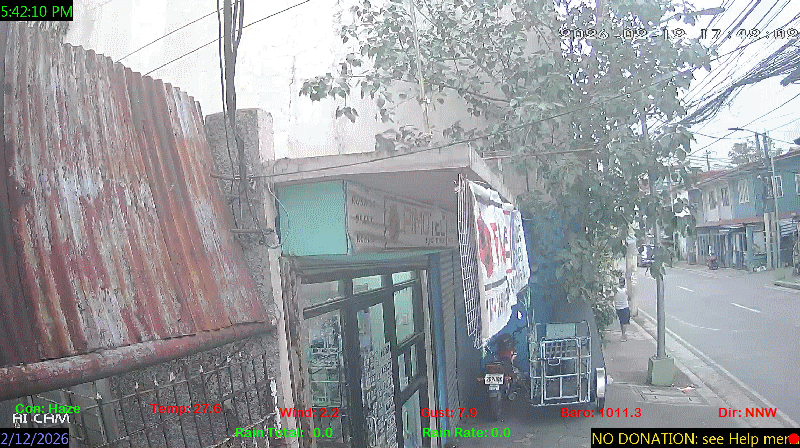 1 Rain season in the Philippines: June 1st to Oct 31st.   5 Estimated amount of water needed to replace the water used by plants and evaporation from the past week. (Negative numbers mean amount of water needed, positive numbers mean excess water is present).   6 Air Quality Index is provided by Luftdaten System esp8266 and is updated every 5 mins..   9 Solar Index represents either an absolute scale of solar energy (W/m²) using the station’s recorded maximum or a percentage of computed theoretical solar maximum using the station’s location and time of day. These indices differ most when the sun is low on the horizon. The current scale is shown, and will toggle if it or the icon is clicked.   10 Historical average only to day 12 of just the month of February for this station since 2016.   11 Historical average rain this season to day 12 of February for this station since 2016.