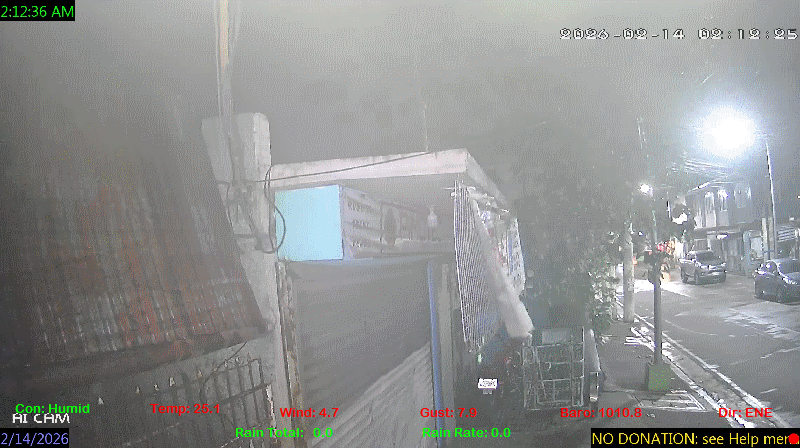 1 Rain season in the Philippines: June 1st to Oct 31st.   5 Estimated amount of water needed to replace the water used by plants and evaporation from the past week. (Negative numbers mean amount of water needed, positive numbers mean excess water is present).   6 Air Quality Index is provided by Luftdaten System esp8266 and is updated every 5 mins..   10 Historical average only to day 14 of just the month of February for this station since 2016.   11 Historical average rain this season to day 14 of February for this station since 2016.