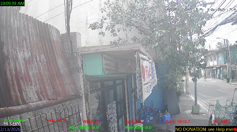 1 Rain season in the Philippines: June 1st to Oct 31st.   5 Estimated amount of water needed to replace the water used by plants and evaporation from the past week. (Negative numbers mean amount of water needed, positive numbers mean excess water is present).   6 Air Quality Index is provided by Luftdaten System esp8266 and is updated every 5 mins..   9 Solar Index represents either an absolute scale of solar energy (W/m²) using the station’s recorded maximum or a percentage of computed theoretical solar maximum using the station’s location and time of day. These indices differ most when the sun is low on the horizon. The current scale is shown, and will toggle if it or the icon is clicked.   10 Historical average only to day 13 of just the month of February for this station since 2016.   11 Historical average rain this season to day 13 of February for this station since 2016.
