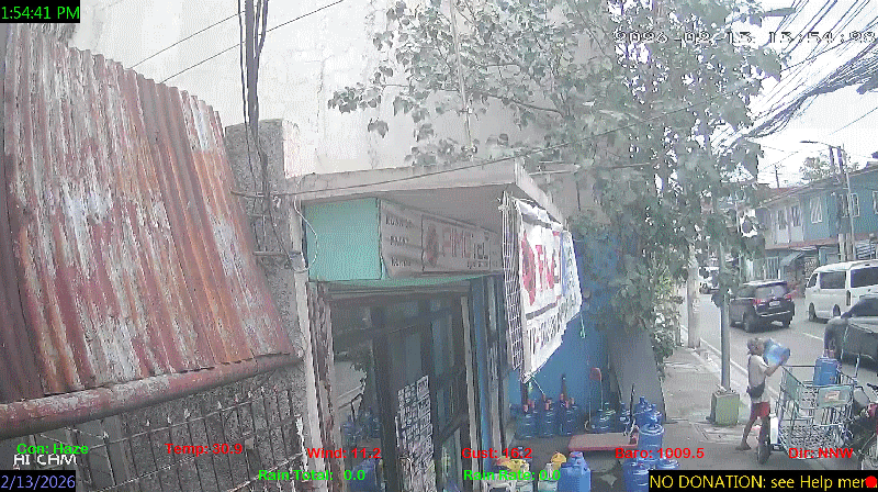 1 Rain season in the Philippines: June 1st to Oct 31st.   5 Estimated amount of water needed to replace the water used by plants and evaporation from the past week. (Negative numbers mean amount of water needed, positive numbers mean excess water is present).   6 Air Quality Index is provided by Luftdaten System esp8266 and is updated every 5 mins..   9 Solar Index represents either an absolute scale of solar energy (W/m²) using the station’s recorded maximum or a percentage of computed theoretical solar maximum using the station’s location and time of day. These indices differ most when the sun is low on the horizon. The current scale is shown, and will toggle if it or the icon is clicked.   10 Historical average only to day 13 of just the month of February for this station since 2016.   11 Historical average rain this season to day 13 of February for this station since 2016.