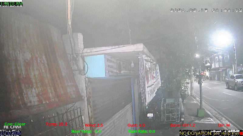 1 Rain season in the Philippines: June 1st to Oct 31st.   5 Estimated amount of water needed to replace the water used by plants and evaporation from the past week. (Negative numbers mean amount of water needed, positive numbers mean excess water is present).   6 Air Quality Index is provided by Luftdaten System esp8266 and is updated every 5 mins..   9 Solar Index represents either an absolute scale of solar energy (W/m²) using the station’s recorded maximum or a percentage of computed theoretical solar maximum using the station’s location and time of day. These indices differ most when the sun is low on the horizon. The current scale is shown, and will toggle if it or the icon is clicked.   10 Historical average only to day 12 of just the month of February for this station since 2016.   11 Historical average rain this season to day 12 of February for this station since 2016.