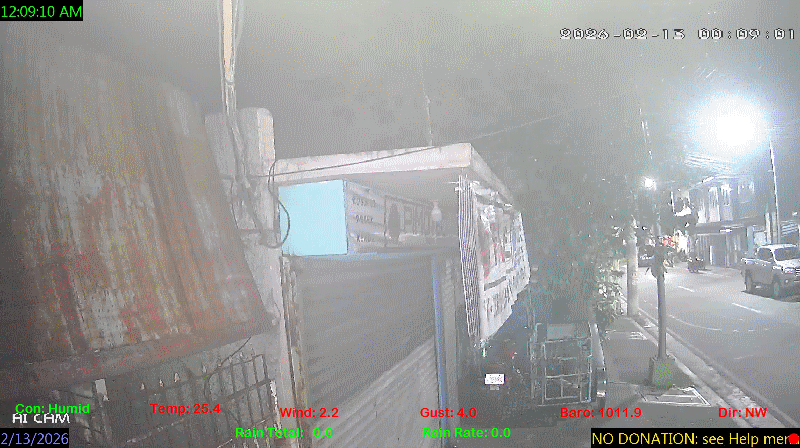1 Rain season in the Philippines: June 1st to Oct 31st.   5 Estimated amount of water needed to replace the water used by plants and evaporation from the past week. (Negative numbers mean amount of water needed, positive numbers mean excess water is present).   6 Air Quality Index is provided by Luftdaten System esp8266 and is updated every 5 mins..   9 Solar Index represents either an absolute scale of solar energy (W/m²) using the station’s recorded maximum or a percentage of computed theoretical solar maximum using the station’s location and time of day. These indices differ most when the sun is low on the horizon. The current scale is shown, and will toggle if it or the icon is clicked.   10 Historical average only to day 12 of just the month of February for this station since 2016.   11 Historical average rain this season to day 12 of February for this station since 2016.