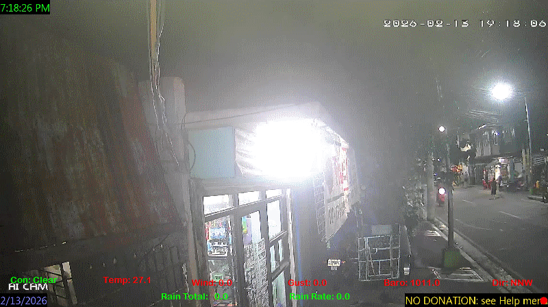 1 Rain season in the Philippines: June 1st to Oct 31st.   5 Estimated amount of water needed to replace the water used by plants and evaporation from the past week. (Negative numbers mean amount of water needed, positive numbers mean excess water is present).   6 Air Quality Index is provided by Luftdaten System esp8266 and is updated every 5 mins..   9 Solar Index represents either an absolute scale of solar energy (W/m²) using the station’s recorded maximum or a percentage of computed theoretical solar maximum using the station’s location and time of day. These indices differ most when the sun is low on the horizon. The current scale is shown, and will toggle if it or the icon is clicked.   10 Historical average only to day 13 of just the month of February for this station since 2016.   11 Historical average rain this season to day 13 of February for this station since 2016.