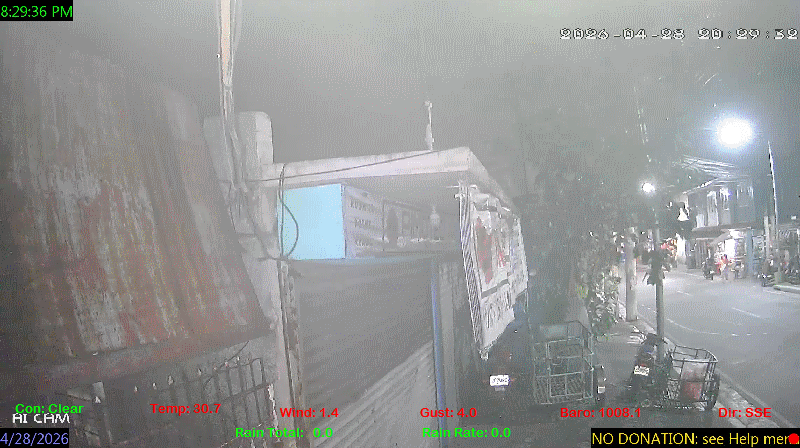 1 Rain season in the Philippines: June 1st to Oct 31st.   5 Estimated amount of water needed to replace the water used by plants and evaporation from the past week. (Negative numbers mean amount of water needed, positive numbers mean excess water is present).   6 Air Quality Index is provided by Luftdaten System esp8266 and is updated every 5 mins..   10 Historical average only to day 26 of just the month of April for this station since 2017.   11 Historical average rain this season to day 26 of April for this station since 2017.