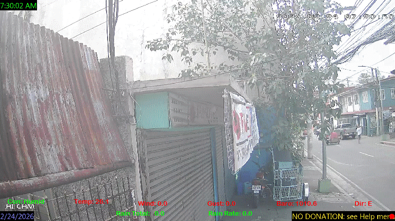 1 Rain season in the Philippines: June 1st to Oct 31st.   5 Estimated amount of water needed to replace the water used by plants and evaporation from the past week. (Negative numbers mean amount of water needed, positive numbers mean excess water is present).   6 Air Quality Index is provided by Luftdaten System esp8266 and is updated every 5 mins..   9 Solar Index represents either an absolute scale of solar energy (W/m²) using the station’s recorded maximum or a percentage of computed theoretical solar maximum using the station’s location and time of day. These indices differ most when the sun is low on the horizon. The current scale is shown, and will toggle if it or the icon is clicked.   10 Historical average only to day 24 of just the month of February for this station since 2016.   11 Historical average rain this season to day 24 of February for this station since 2016.