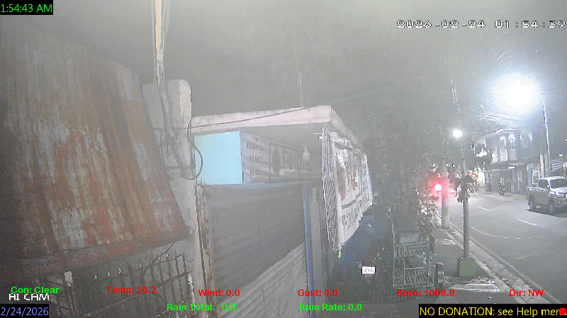 1 Rain season in the Philippines: June 1st to Oct 31st.   5 Estimated amount of water needed to replace the water used by plants and evaporation from the past week. (Negative numbers mean amount of water needed, positive numbers mean excess water is present).   6 Air Quality Index is provided by Luftdaten System esp8266 and is updated every 5 mins..   9 Solar Index represents either an absolute scale of solar energy (W/m²) using the station’s recorded maximum or a percentage of computed theoretical solar maximum using the station’s location and time of day. These indices differ most when the sun is low on the horizon. The current scale is shown, and will toggle if it or the icon is clicked.   10 Historical average only to day 23 of just the month of February for this station since 2016.   11 Historical average rain this season to day 23 of February for this station since 2016.
