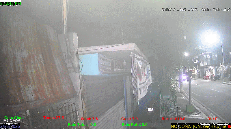 1 Rain season in the Philippines: June 1st to Oct 31st.   5 Estimated amount of water needed to replace the water used by plants and evaporation from the past week. (Negative numbers mean amount of water needed, positive numbers mean excess water is present).   6 Air Quality Index is provided by Luftdaten System esp8266 and is updated every 5 mins..   9 Solar Index represents either an absolute scale of solar energy (W/m²) using the station’s recorded maximum or a percentage of computed theoretical solar maximum using the station’s location and time of day. These indices differ most when the sun is low on the horizon. The current scale is shown, and will toggle if it or the icon is clicked.   10 Historical average only to day 23 of just the month of February for this station since 2016.   11 Historical average rain this season to day 23 of February for this station since 2016.