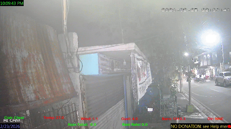 1 Rain season in the Philippines: June 1st to Oct 31st.   5 Estimated amount of water needed to replace the water used by plants and evaporation from the past week. (Negative numbers mean amount of water needed, positive numbers mean excess water is present).   6 Air Quality Index is provided by Luftdaten System esp8266 and is updated every 5 mins..   9 Solar Index represents either an absolute scale of solar energy (W/m²) using the station’s recorded maximum or a percentage of computed theoretical solar maximum using the station’s location and time of day. These indices differ most when the sun is low on the horizon. The current scale is shown, and will toggle if it or the icon is clicked.   10 Historical average only to day 23 of just the month of February for this station since 2016.   11 Historical average rain this season to day 23 of February for this station since 2016.