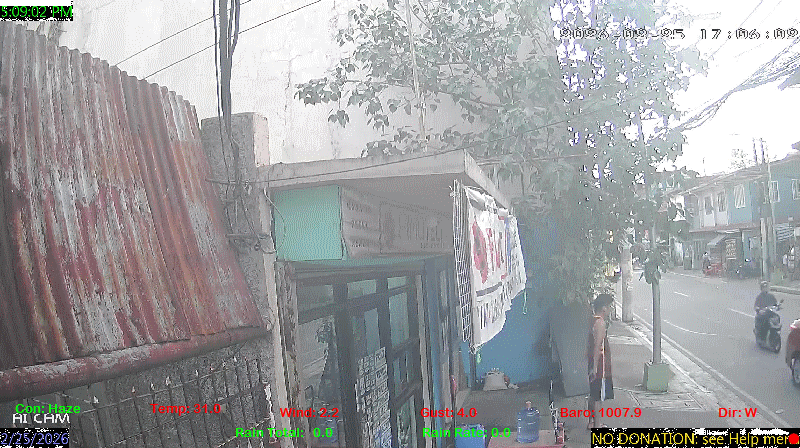 1 Rain season in the Philippines: June 1st to Oct 31st.   5 Estimated amount of water needed to replace the water used by plants and evaporation from the past week. (Negative numbers mean amount of water needed, positive numbers mean excess water is present).   6 Air Quality Index is provided by Luftdaten System esp8266 and is updated every 5 mins..   9 Solar Index represents either an absolute scale of solar energy (W/m²) using the station’s recorded maximum or a percentage of computed theoretical solar maximum using the station’s location and time of day. These indices differ most when the sun is low on the horizon. The current scale is shown, and will toggle if it or the icon is clicked.   10 Historical average only to day 25 of just the month of February for this station since 2016.   11 Historical average rain this season to day 25 of February for this station since 2016.