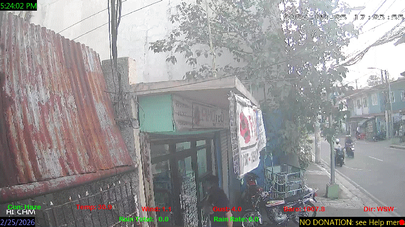 1 Rain season in the Philippines: June 1st to Oct 31st.   5 Estimated amount of water needed to replace the water used by plants and evaporation from the past week. (Negative numbers mean amount of water needed, positive numbers mean excess water is present).   6 Air Quality Index is provided by Luftdaten System esp8266 and is updated every 5 mins..   9 Solar Index represents either an absolute scale of solar energy (W/m²) using the station’s recorded maximum or a percentage of computed theoretical solar maximum using the station’s location and time of day. These indices differ most when the sun is low on the horizon. The current scale is shown, and will toggle if it or the icon is clicked.   10 Historical average only to day 25 of just the month of February for this station since 2016.   11 Historical average rain this season to day 25 of February for this station since 2016.