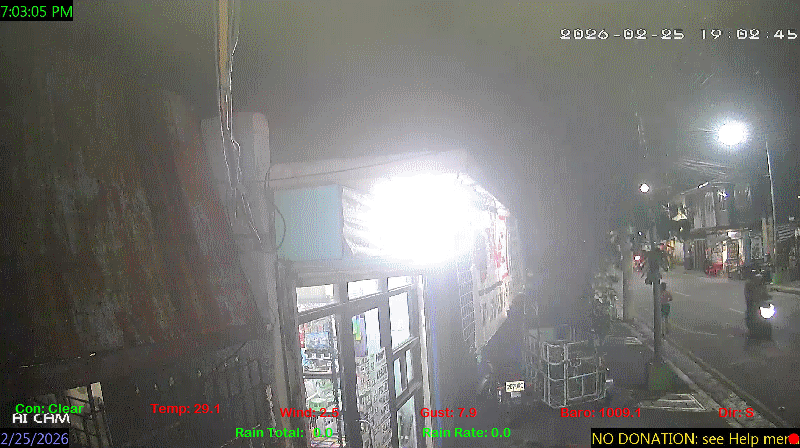 1 Rain season in the Philippines: June 1st to Oct 31st.   5 Estimated amount of water needed to replace the water used by plants and evaporation from the past week. (Negative numbers mean amount of water needed, positive numbers mean excess water is present).   6 Air Quality Index is provided by Luftdaten System esp8266 and is updated every 5 mins..   9 Solar Index represents either an absolute scale of solar energy (W/m²) using the station’s recorded maximum or a percentage of computed theoretical solar maximum using the station’s location and time of day. These indices differ most when the sun is low on the horizon. The current scale is shown, and will toggle if it or the icon is clicked.   10 Historical average only to day 25 of just the month of February for this station since 2016.   11 Historical average rain this season to day 25 of February for this station since 2016.