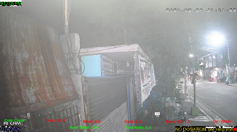 1 Rain season in the Philippines: June 1st to Oct 31st.   5 Estimated amount of water needed to replace the water used by plants and evaporation from the past week. (Negative numbers mean amount of water needed, positive numbers mean excess water is present).   6 Air Quality Index is provided by Luftdaten System esp8266 and is updated every 5 mins..   9 Solar Index represents either an absolute scale of solar energy (W/m²) using the station’s recorded maximum or a percentage of computed theoretical solar maximum using the station’s location and time of day. These indices differ most when the sun is low on the horizon. The current scale is shown, and will toggle if it or the icon is clicked.   10 Historical average only to day 24 of just the month of February for this station since 2016.   11 Historical average rain this season to day 24 of February for this station since 2016.