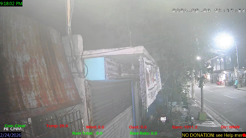 1 Rain season in the Philippines: June 1st to Oct 31st.   5 Estimated amount of water needed to replace the water used by plants and evaporation from the past week. (Negative numbers mean amount of water needed, positive numbers mean excess water is present).   6 Air Quality Index is provided by Luftdaten System esp8266 and is updated every 5 mins..   10 Historical average only to day 24 of just the month of February for this station since 2016.   11 Historical average rain this season to day 24 of February for this station since 2016.