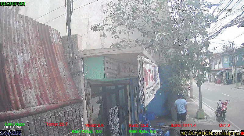 1 Rain season in the Philippines: June 1st to Oct 31st.   5 Estimated amount of water needed to replace the water used by plants and evaporation from the past week. (Negative numbers mean amount of water needed, positive numbers mean excess water is present).   6 Air Quality Index is provided by Luftdaten System esp8266 and is updated every 5 mins..   9 Solar Index represents either an absolute scale of solar energy (W/m²) using the station’s recorded maximum or a percentage of computed theoretical solar maximum using the station’s location and time of day. These indices differ most when the sun is low on the horizon. The current scale is shown, and will toggle if it or the icon is clicked.   10 Historical average only to day 23 of just the month of February for this station since 2016.   11 Historical average rain this season to day 23 of February for this station since 2016.