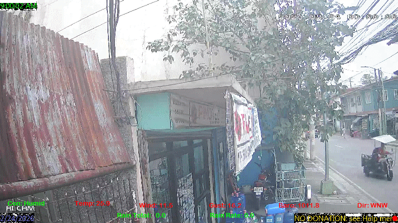 1 Rain season in the Philippines: June 1st to Oct 31st.   5 Estimated amount of water needed to replace the water used by plants and evaporation from the past week. (Negative numbers mean amount of water needed, positive numbers mean excess water is present).   6 Air Quality Index is provided by Luftdaten System esp8266 and is updated every 5 mins..   9 Solar Index represents either an absolute scale of solar energy (W/m²) using the station’s recorded maximum or a percentage of computed theoretical solar maximum using the station’s location and time of day. These indices differ most when the sun is low on the horizon. The current scale is shown, and will toggle if it or the icon is clicked.   10 Historical average only to day 24 of just the month of February for this station since 2016.   11 Historical average rain this season to day 24 of February for this station since 2016.