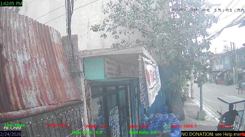 1 Rain season in the Philippines: June 1st to Oct 31st.   5 Estimated amount of water needed to replace the water used by plants and evaporation from the past week. (Negative numbers mean amount of water needed, positive numbers mean excess water is present).   6 Air Quality Index is provided by Luftdaten System esp8266 and is updated every 5 mins..   10 Historical average only to day 24 of just the month of February for this station since 2016.   11 Historical average rain this season to day 24 of February for this station since 2016.