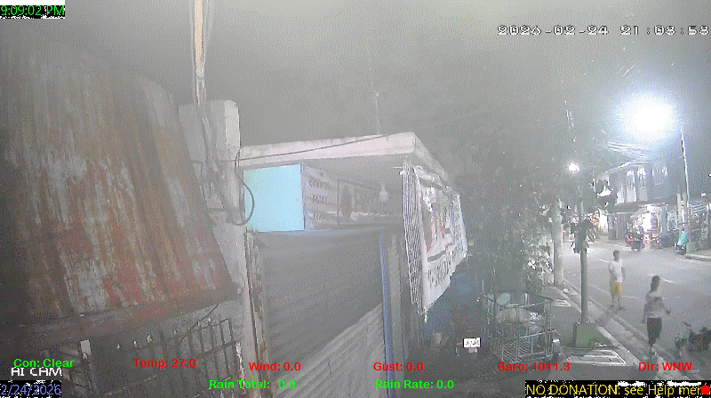 1 Rain season in the Philippines: June 1st to Oct 31st.   5 Estimated amount of water needed to replace the water used by plants and evaporation from the past week. (Negative numbers mean amount of water needed, positive numbers mean excess water is present).   6 Air Quality Index is provided by Luftdaten System esp8266 and is updated every 5 mins..   9 Solar Index represents either an absolute scale of solar energy (W/m²) using the station’s recorded maximum or a percentage of computed theoretical solar maximum using the station’s location and time of day. These indices differ most when the sun is low on the horizon. The current scale is shown, and will toggle if it or the icon is clicked.   10 Historical average only to day 24 of just the month of February for this station since 2016.   11 Historical average rain this season to day 24 of February for this station since 2016.