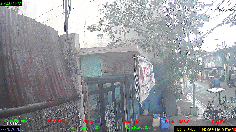 1 Rain season in the Philippines: June 1st to Oct 31st.   5 Estimated amount of water needed to replace the water used by plants and evaporation from the past week. (Negative numbers mean amount of water needed, positive numbers mean excess water is present).   6 Air Quality Index is provided by Luftdaten System esp8266 and is updated every 5 mins..   9 Solar Index represents either an absolute scale of solar energy (W/m²) using the station’s recorded maximum or a percentage of computed theoretical solar maximum using the station’s location and time of day. These indices differ most when the sun is low on the horizon. The current scale is shown, and will toggle if it or the icon is clicked.   10 Historical average only to day 24 of just the month of February for this station since 2016.   11 Historical average rain this season to day 24 of February for this station since 2016.