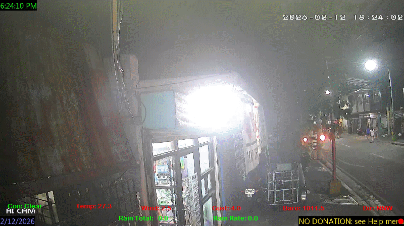 1 Rain season in the Philippines: June 1st to Oct 31st.   5 Estimated amount of water needed to replace the water used by plants and evaporation from the past week. (Negative numbers mean amount of water needed, positive numbers mean excess water is present).   6 Air Quality Index is provided by Luftdaten System esp8266 and is updated every 5 mins..   9 Solar Index represents either an absolute scale of solar energy (W/m²) using the station’s recorded maximum or a percentage of computed theoretical solar maximum using the station’s location and time of day. These indices differ most when the sun is low on the horizon. The current scale is shown, and will toggle if it or the icon is clicked.   10 Historical average only to day 12 of just the month of February for this station since 2016.   11 Historical average rain this season to day 12 of February for this station since 2016.