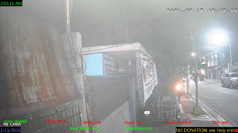 1 Rain season in the Philippines: June 1st to Oct 31st.   5 Estimated amount of water needed to replace the water used by plants and evaporation from the past week. (Negative numbers mean amount of water needed, positive numbers mean excess water is present).   6 Air Quality Index is provided by Luftdaten System esp8266 and is updated every 5 mins..   9 Solar Index represents either an absolute scale of solar energy (W/m²) using the station’s recorded maximum or a percentage of computed theoretical solar maximum using the station’s location and time of day. These indices differ most when the sun is low on the horizon. The current scale is shown, and will toggle if it or the icon is clicked.   10 Historical average only to day 13 of just the month of February for this station since 2016.   11 Historical average rain this season to day 13 of February for this station since 2016.