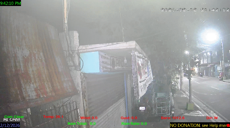 1 Rain season in the Philippines: June 1st to Oct 31st.   5 Estimated amount of water needed to replace the water used by plants and evaporation from the past week. (Negative numbers mean amount of water needed, positive numbers mean excess water is present).   6 Air Quality Index is provided by Luftdaten System esp8266 and is updated every 5 mins..   9 Solar Index represents either an absolute scale of solar energy (W/m²) using the station’s recorded maximum or a percentage of computed theoretical solar maximum using the station’s location and time of day. These indices differ most when the sun is low on the horizon. The current scale is shown, and will toggle if it or the icon is clicked.   10 Historical average only to day 12 of just the month of February for this station since 2016.   11 Historical average rain this season to day 12 of February for this station since 2016.